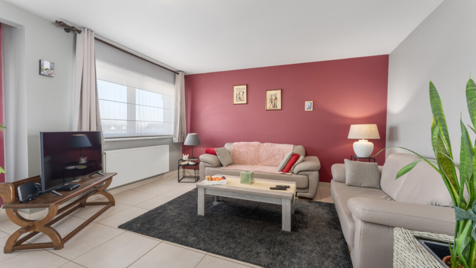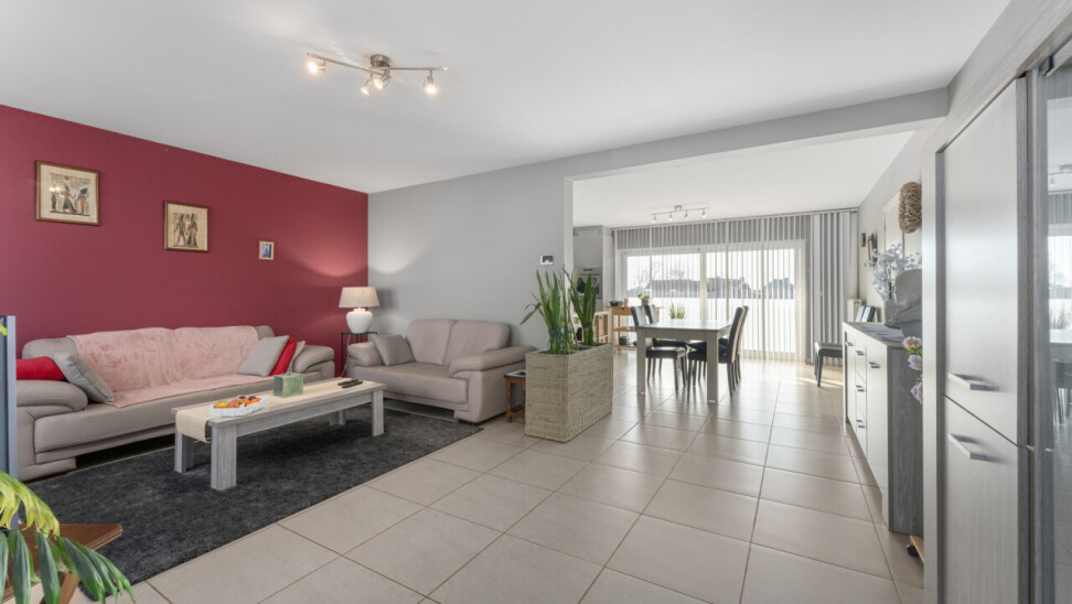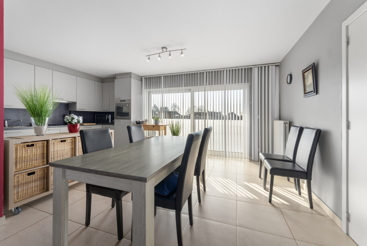Dit ruime appartement op 102 m² heeft bijkomend ook een GROTE DUBBELE GARAGE, een TERRAS met OPEN ZICHT en een praktische berging/wasplaats.