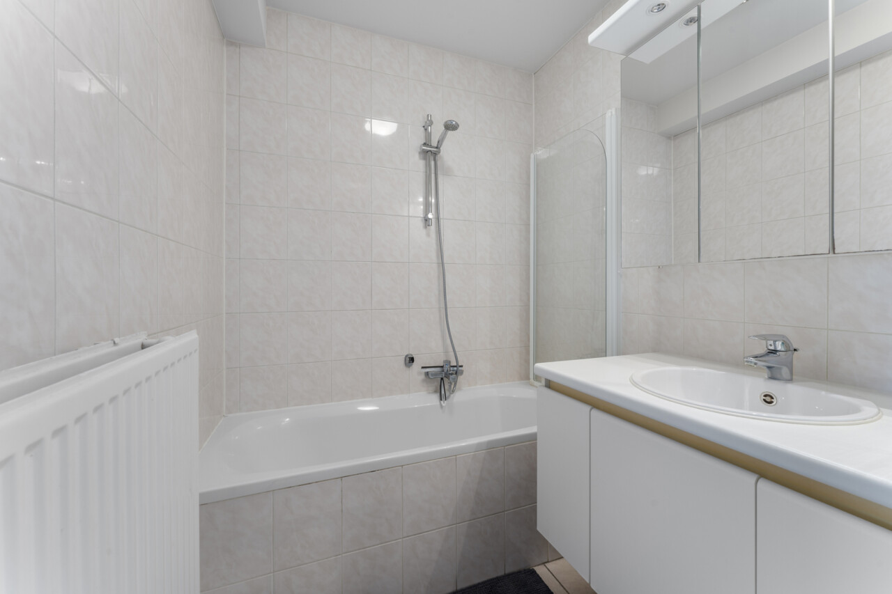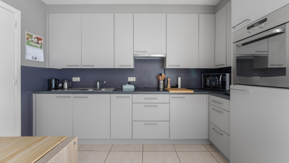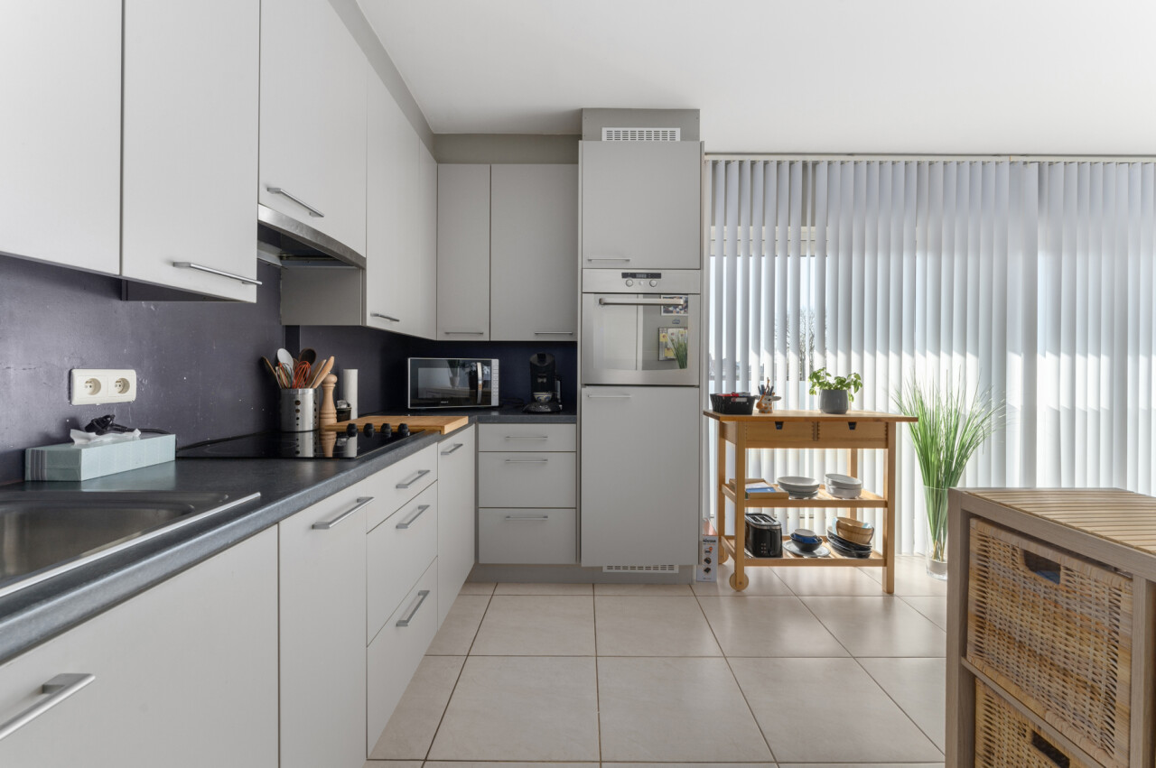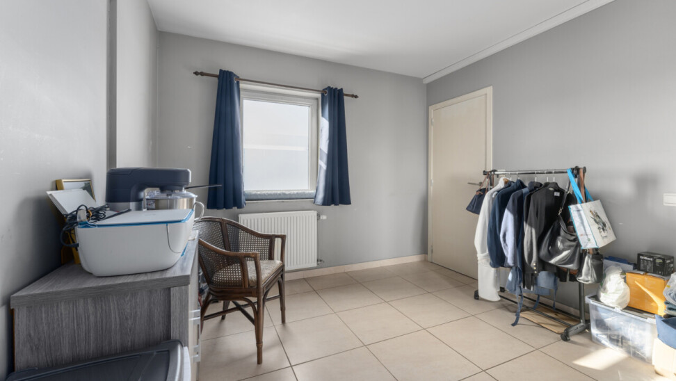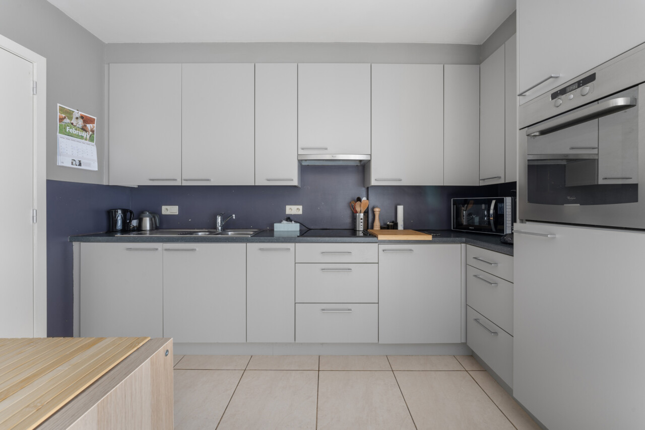 Het appartement heeft op het gelijkvloers een eigen berging/wasplaats en een dubbele garage met automatische sectionaalpoort.