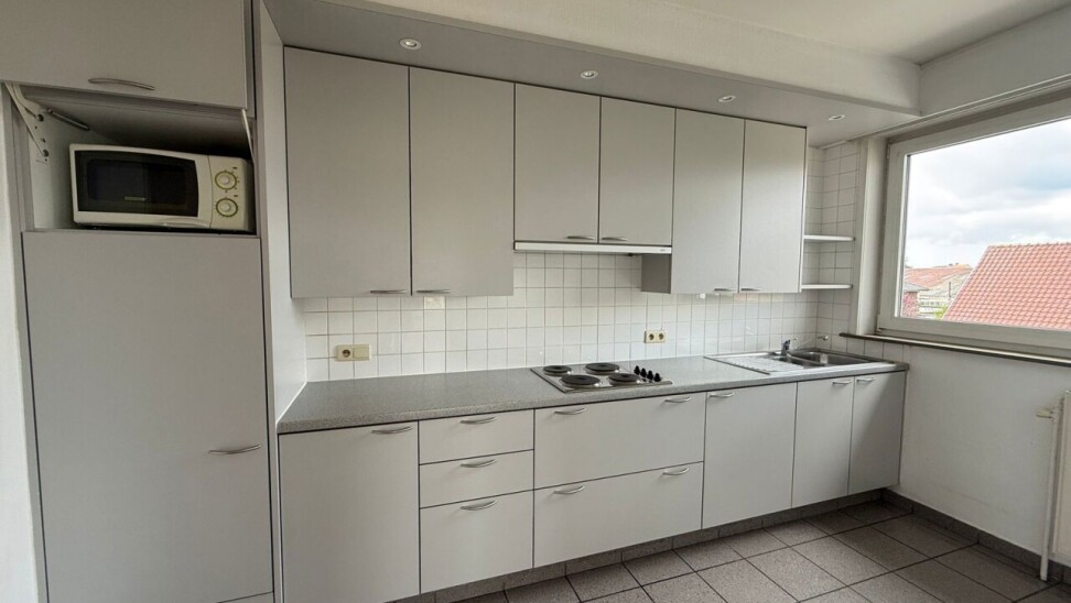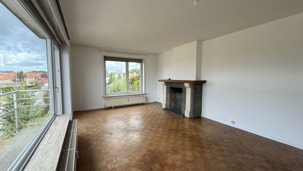 Je komt binnen in de inkomhal met gastentoilet. De woonkamer biedt uitzicht op de straat en toegang tot het vooraan gelegen balkon. Aansluitend is er de aparte, volledig ingerichte keuken met dubbele spoelbak, elektrisch fornuis, dampkap en koelkast.