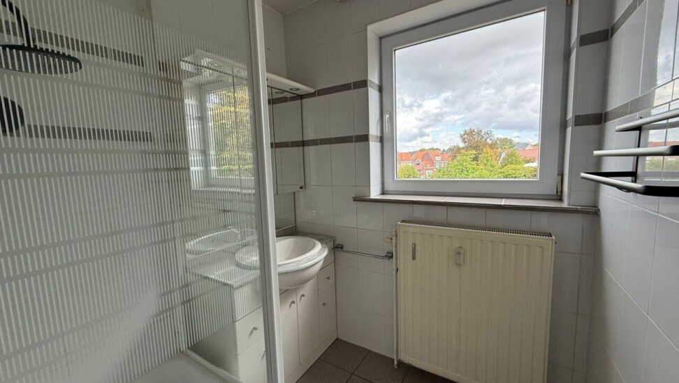Achteraan bevinden zich drie rustig gelegen slaapkamers, waarvan twee met toegang tot het achtergelegen balkon en een berging met aansluiting voor de wasmachine. De badkamer is uitgerust met een lavabomeubel en een douche.