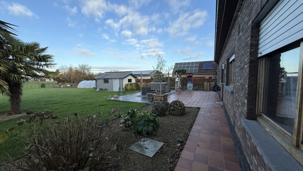 Daarnaast is er een inpandige garage en een grote tuin met tuinhuis en ruim terras.