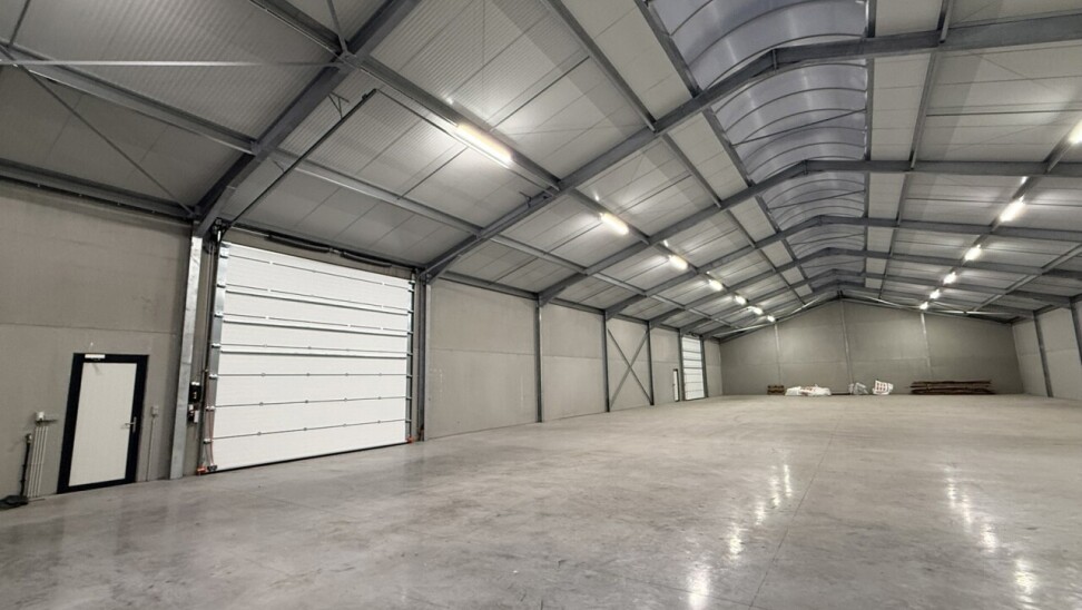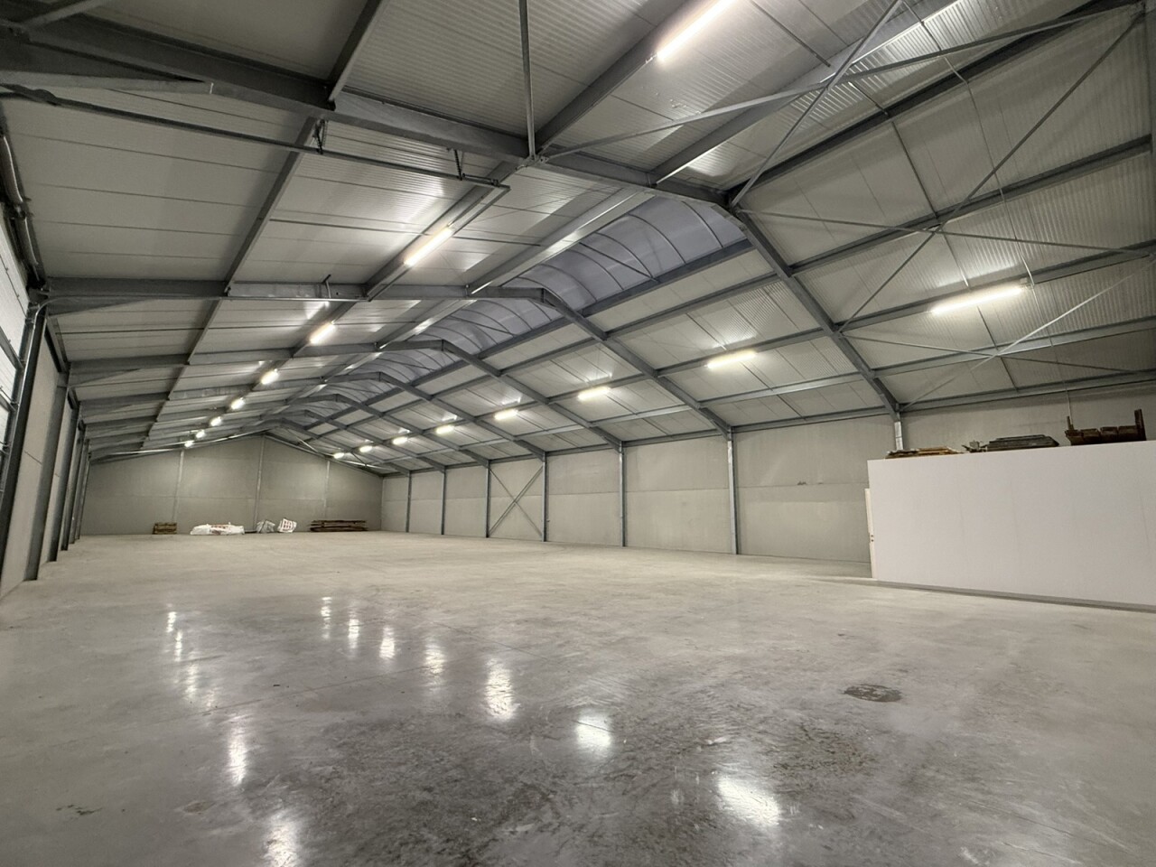 Deze gloednieuwe loods is toegankelijk via twee sectionaalpoorten met een hoogte van 5,2 meter en beschikt over een lichtstraat, een betonvloer en elektriciteit...